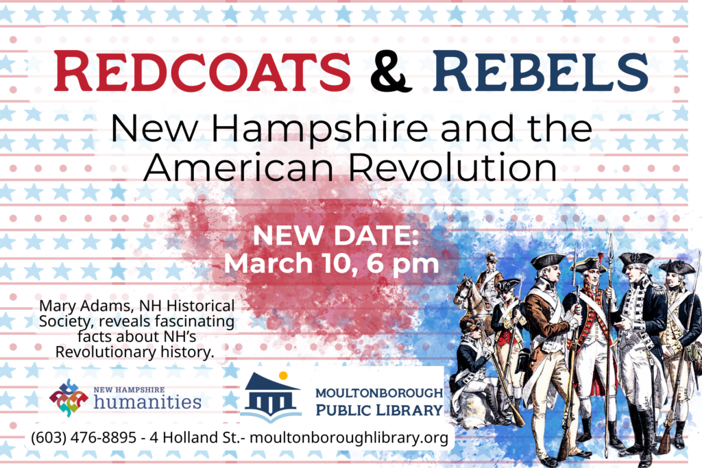 Mary Adams of the NH Historical Society presents “Redcoats and Rebels,” a NH Humanities presentation about the role of our state in the American Revolution.